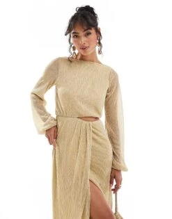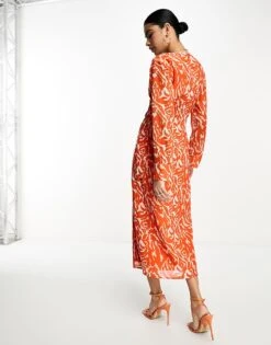 Pretty Lavish Long Sleeve Ruffle Midaxi Dress In Green And Fuchsia Floral For Women Green & Fuchsia