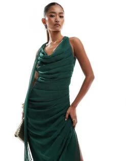 Pretty Lavish Exclusive To ASOS Raleigh Cowl Back Satin Midaxi Dress In Terracotta For Women
