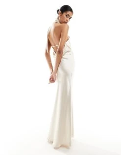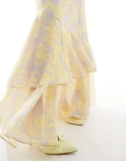 Pretty Lavish Halter Neck Cut-out Maxi Dress In Lemon And Beige Floral For Women Lemon/beige