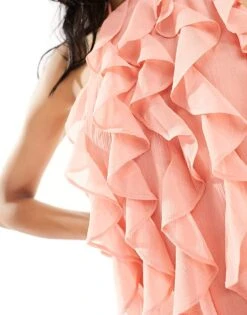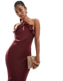Pretty Lavish Halter Ruffle Midaxi Dress In Pink Abstract Floral For Women Pink Multi Floral