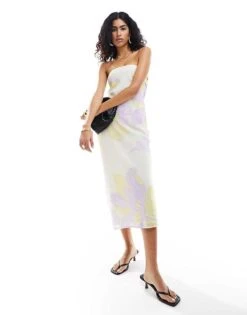 Pretty Lavish Asymmetric Cowl Slip Maxi Dress In Olive And Fuchsia Floral For Women Olive/fuchsia