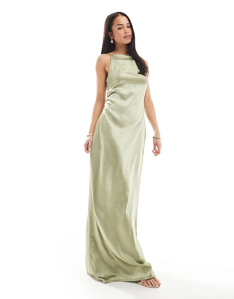 Pretty Lavish Asymmetric Cowl Slip Maxi Dress In Olive And Fuchsia Floral For Women Olive/fuchsia