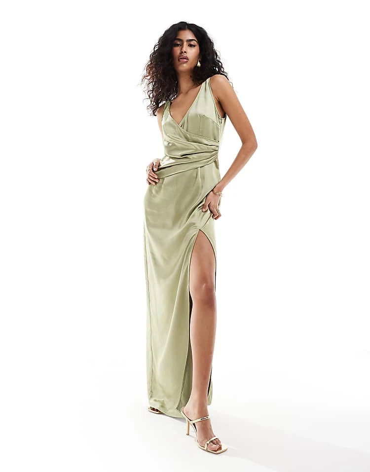 Pretty Lavish Asymmetric Cowl Slip Maxi Dress In Olive And Fuchsia Floral For Women Olive/fuchsia