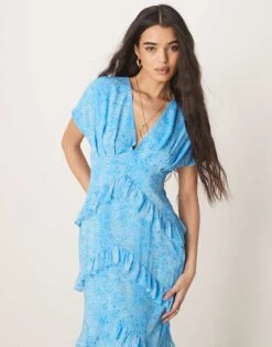 Pretty Lavish Long Sleeve Ruffle Midaxi Dress In Green And Fuchsia Floral For Women Green & Fuchsia