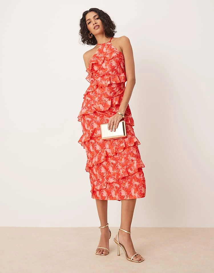 Pretty Lavish Asymmetric Cowl Slip Maxi Dress In Olive And Fuchsia Floral For Women Olive/fuchsia