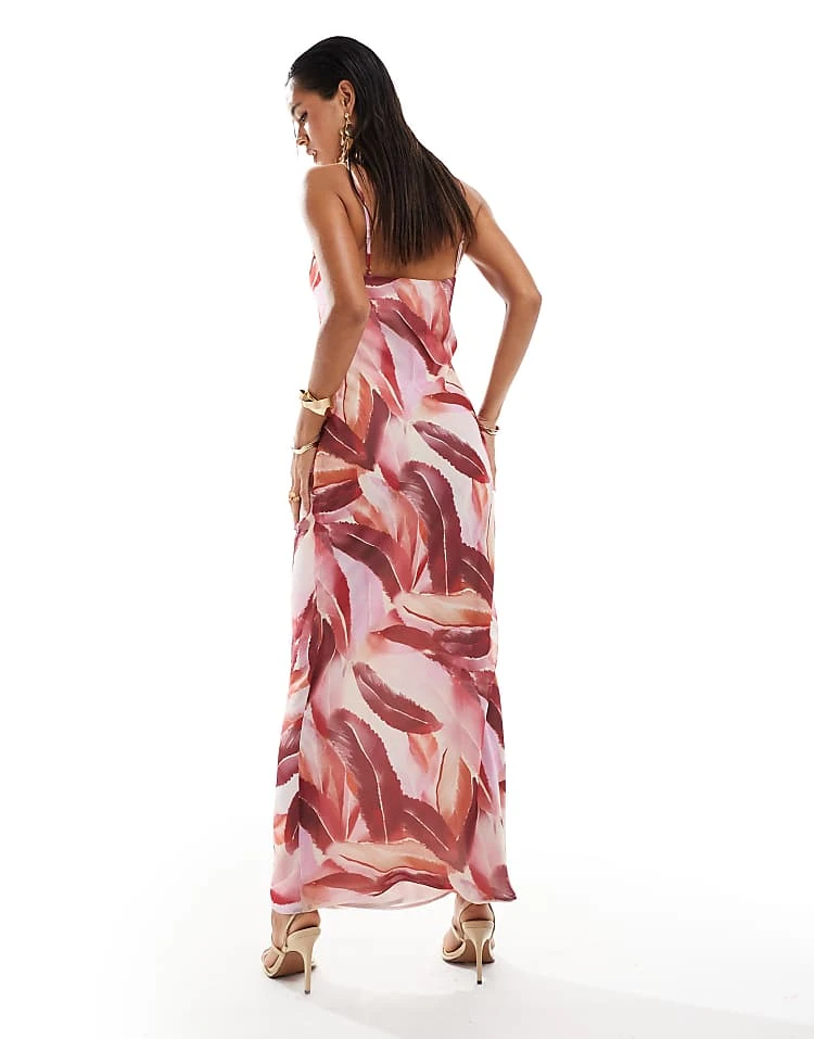 Pretty Lavish Long Sleeve Ruffle Midaxi Dress In Green And Fuchsia Floral For Women Green & Fuchsia