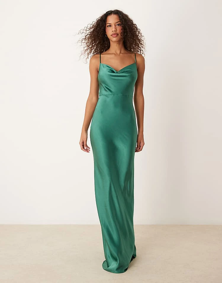 Pretty Lavish Asymmetric Cowl Slip Maxi Dress In Olive And Fuchsia Floral For Women Olive/fuchsia