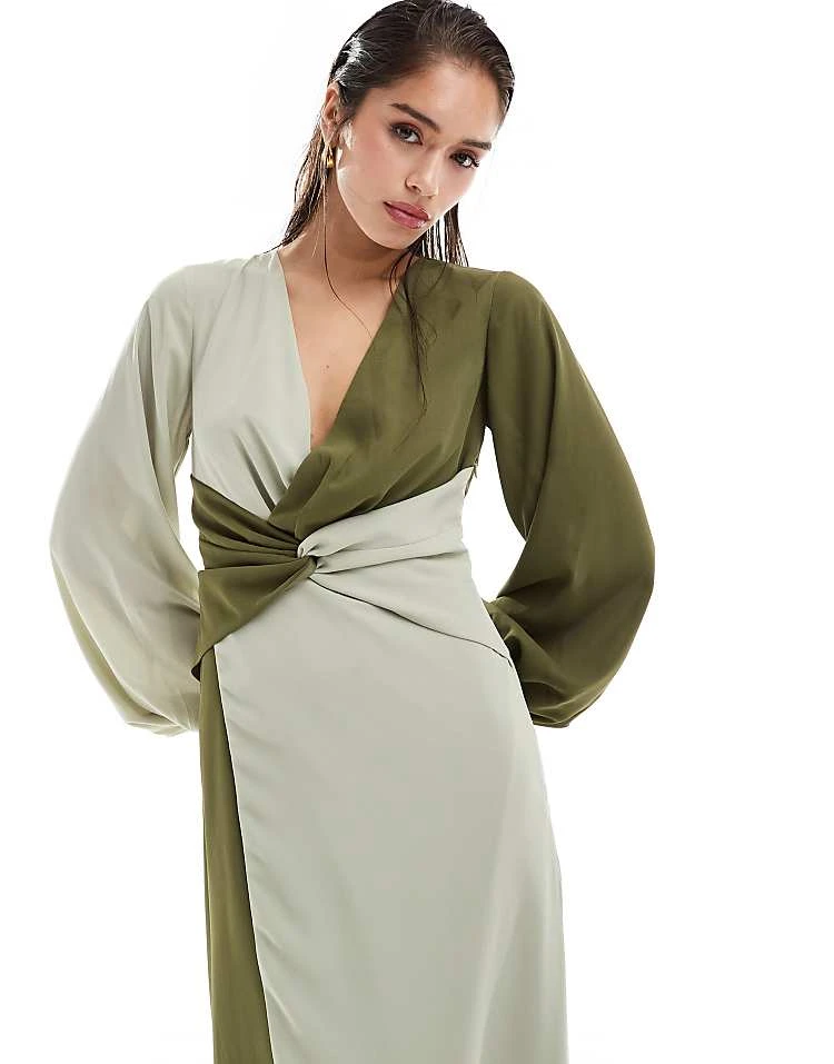 Pretty Lavish Long Sleeve Ruffle Midaxi Dress In Green And Fuchsia Floral For Women Green & Fuchsia