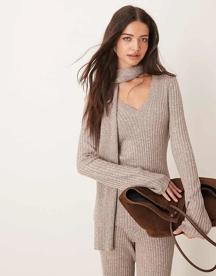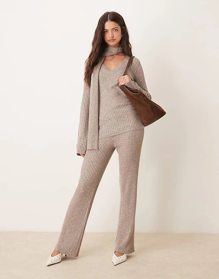 Pretty Lavish Ribbed Knit Co-ord In Grey
