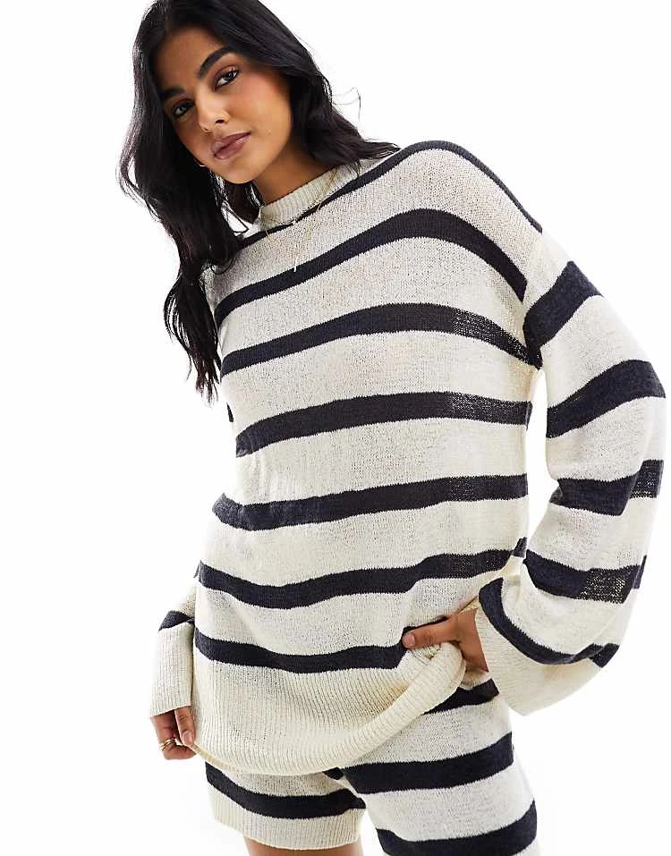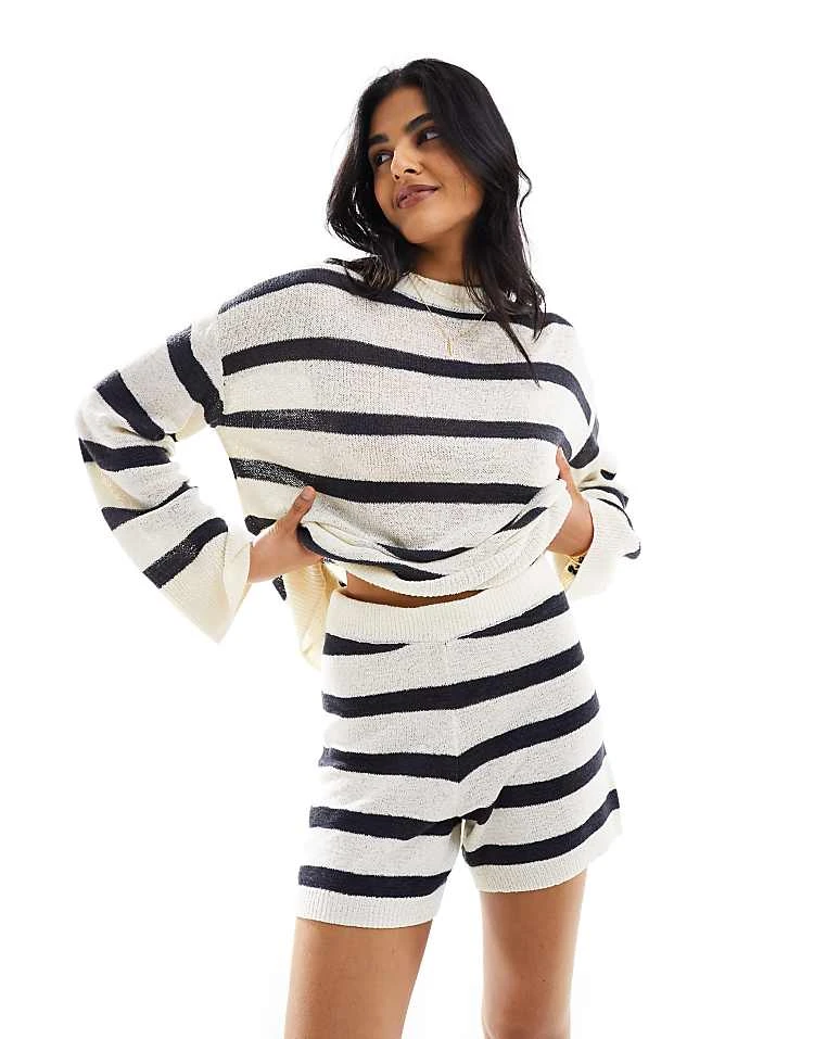 Pretty Lavish Stripe Knit Jumper And Shorts Co-ord In Cream And Navy
