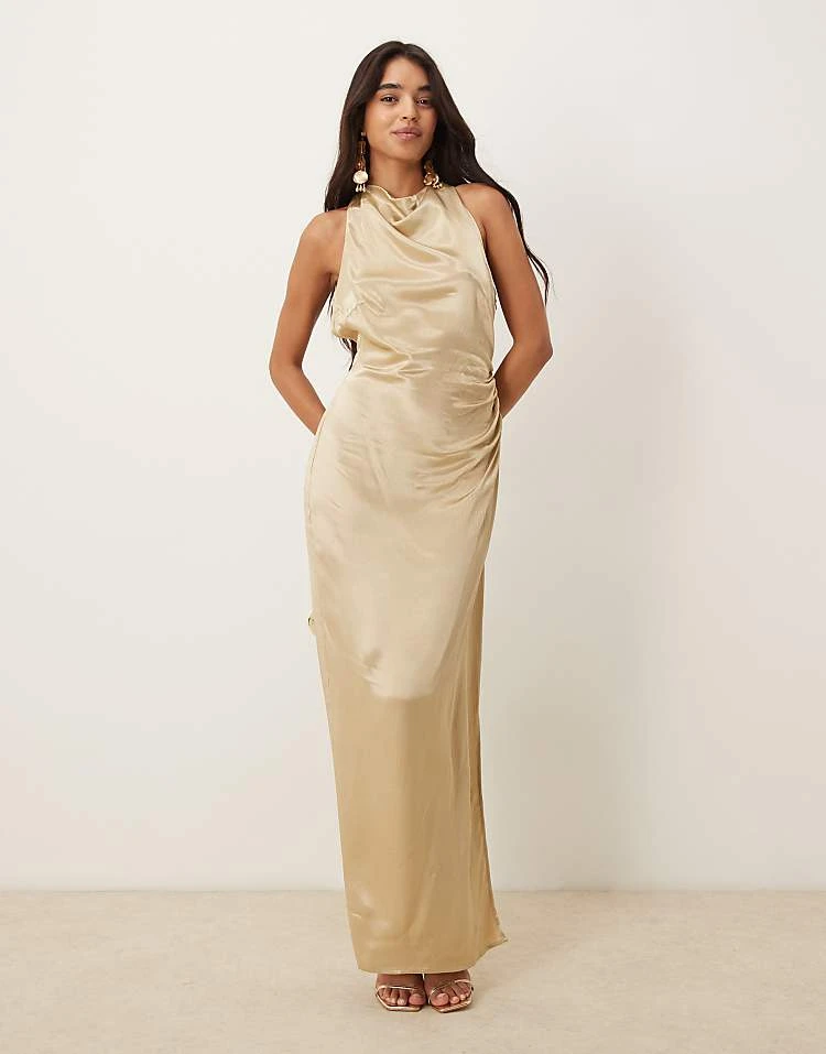 Pretty Lavish Asymmetric Cowl Slip Maxi Dress In Olive And Fuchsia Floral For Women Olive/fuchsia