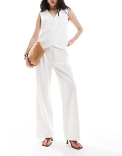 Pretty Lavish Tailored Wide Leg Trouser Co-ord In Chalk For Women